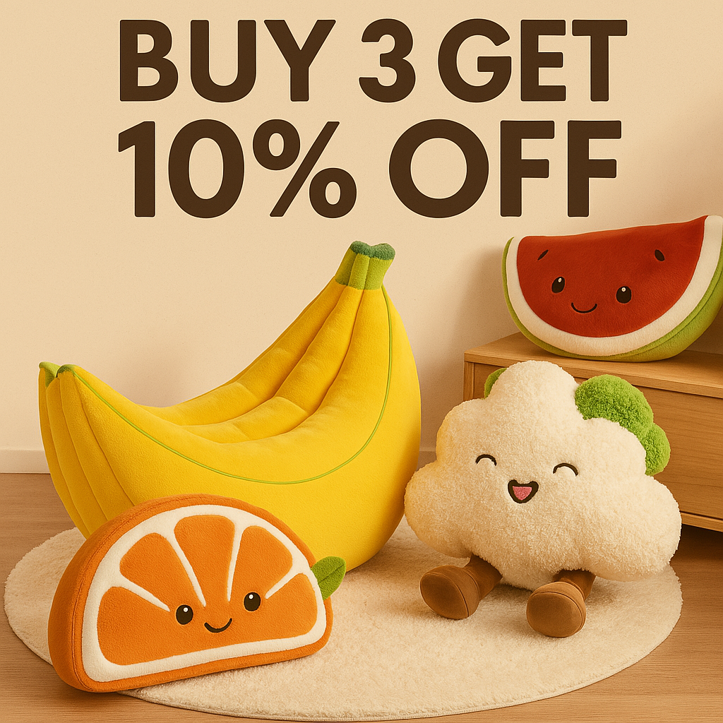 Compra Cualquier Tres Juguetes de Peluche, Obtén un 10% de Descuento